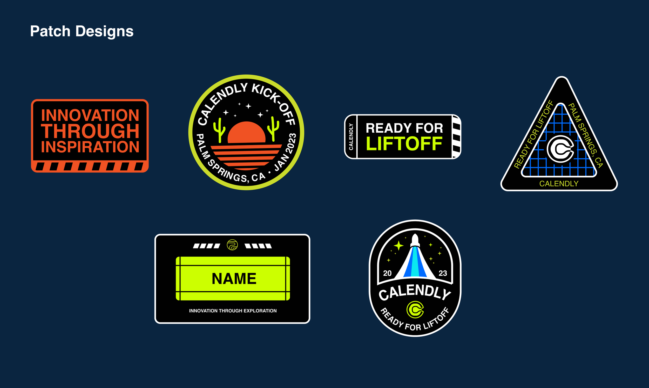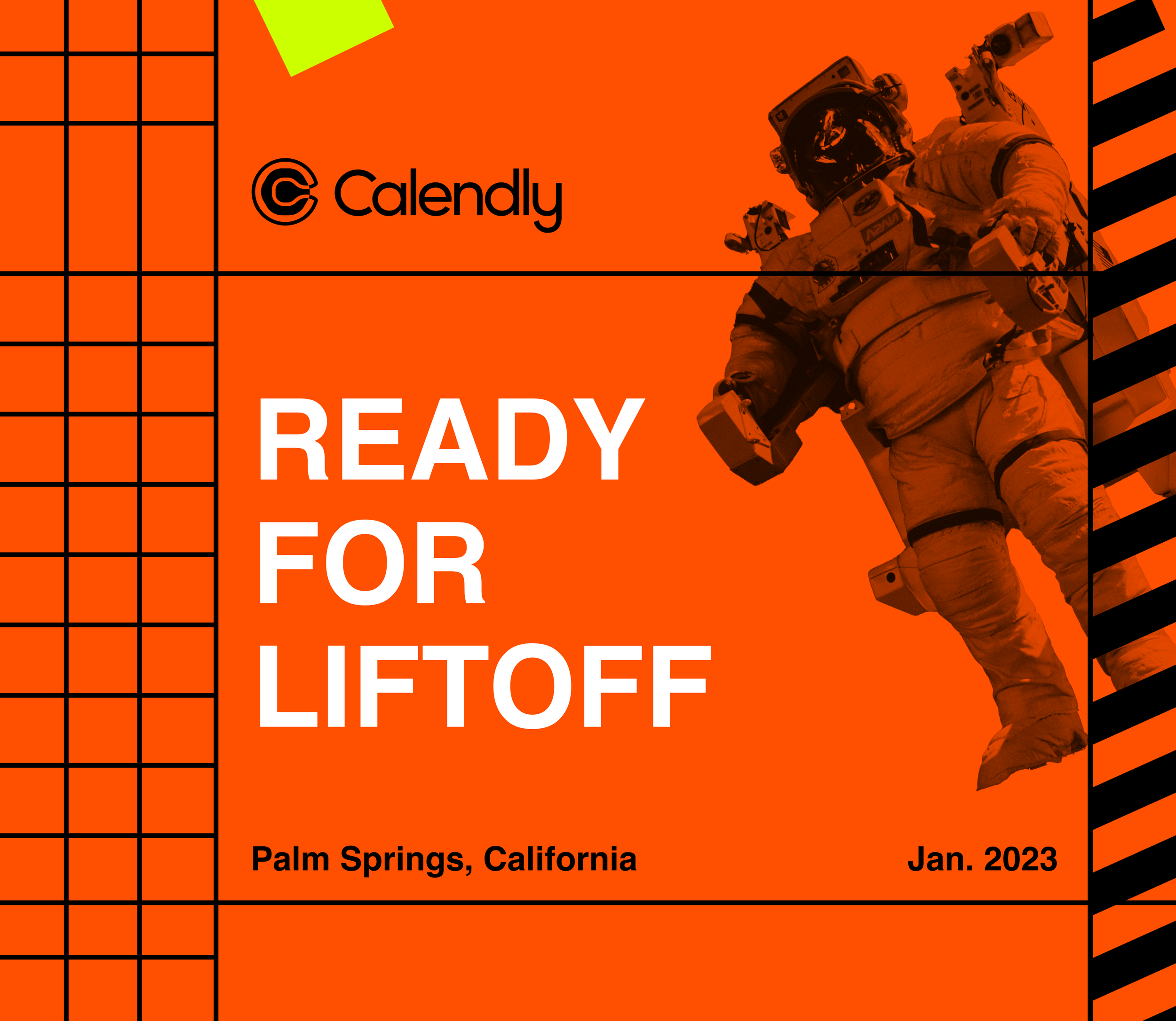 Calendly holds its annual company kickoff every year in Q1. In 2023, the kickoff event was held in Palm Springs, California. The brand + creative team was tasked with developing a concept and theme as well as building out all assets and deliverables for the event. We leaned into the theme of space exploration, innovation, and traveling into the unknown to align with kicking off 2023. Ready for Liftoff was born.