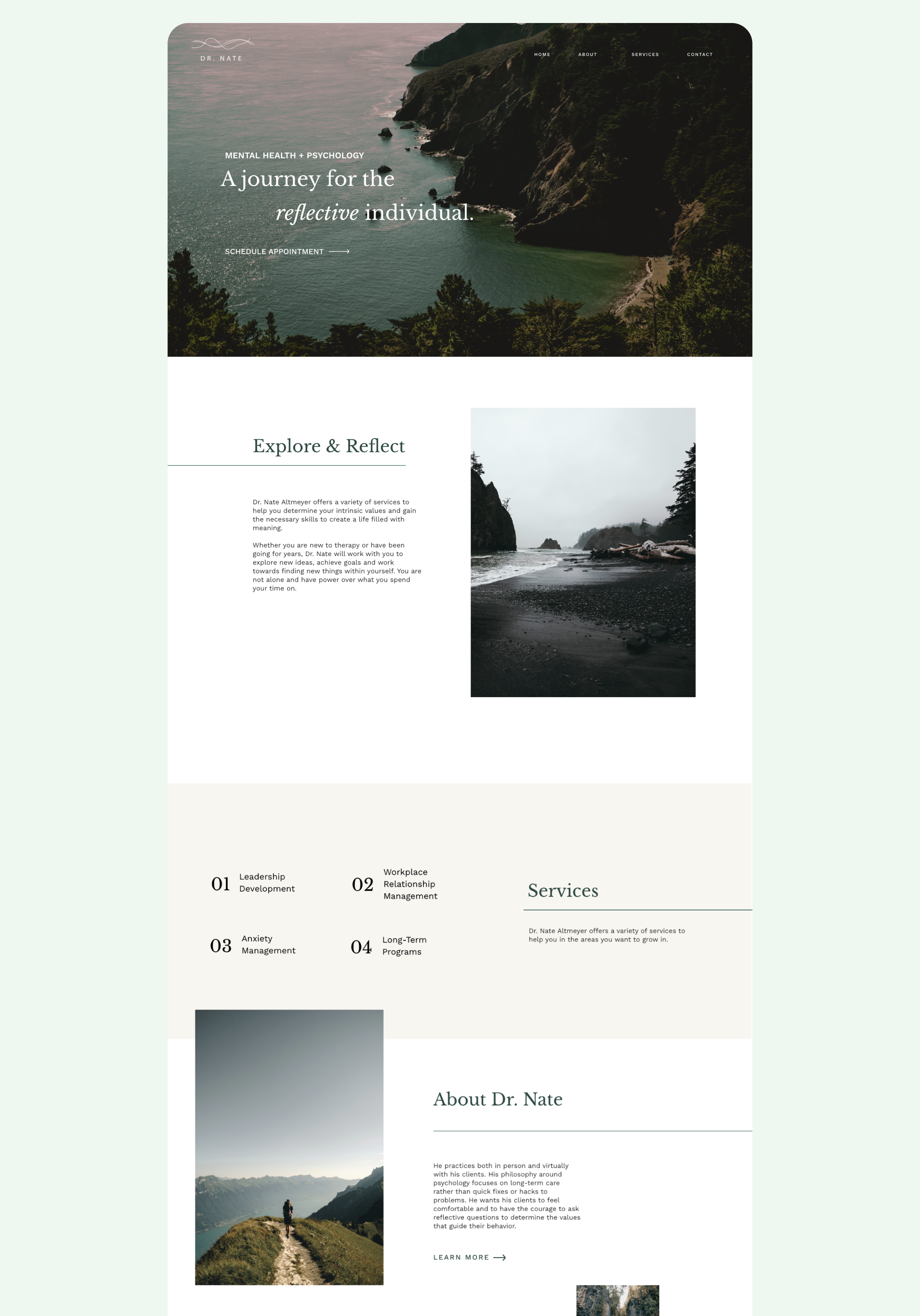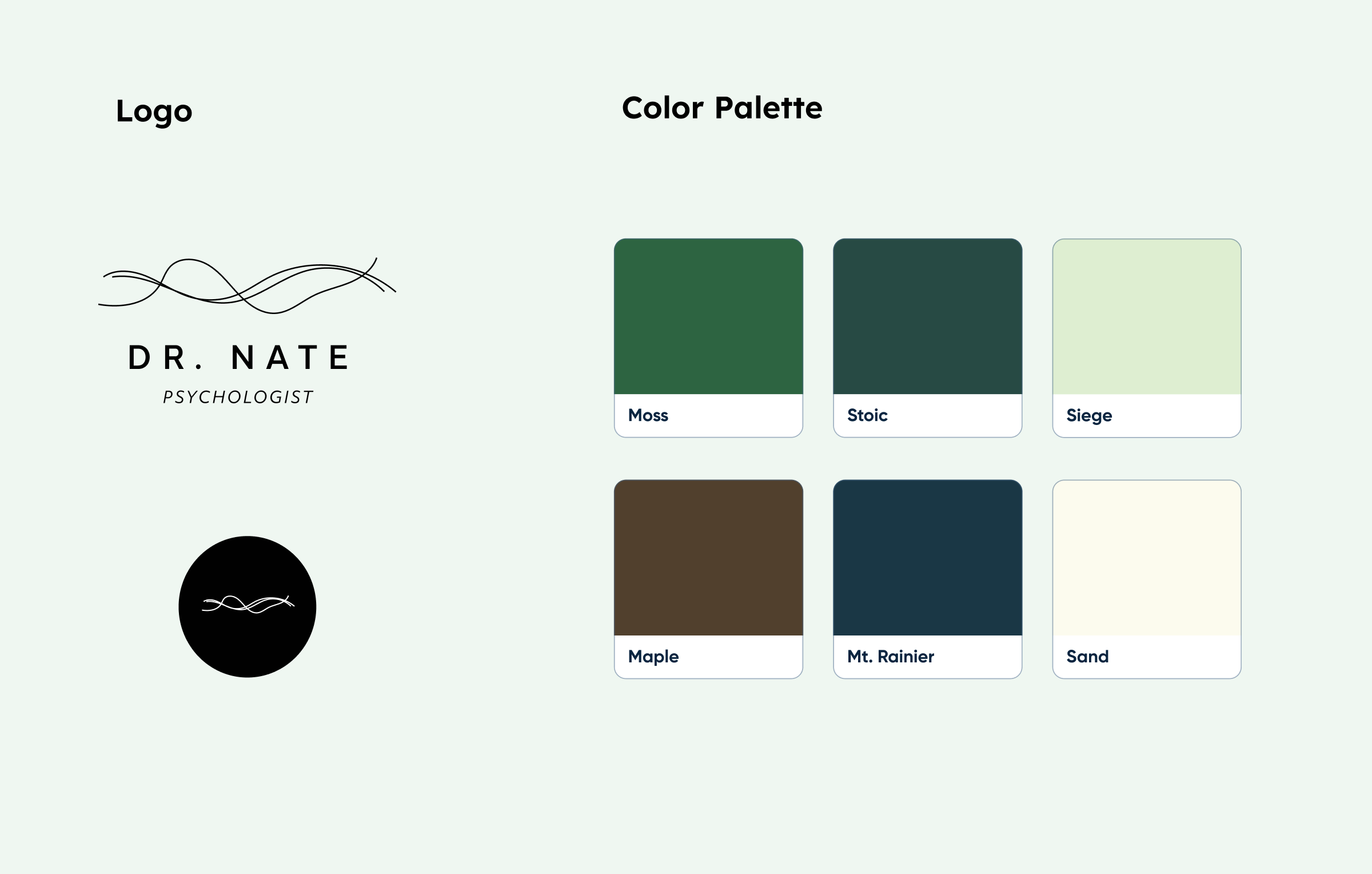 The final logo chosen for the branding was inspired by waves. They are meant to echo the ebbs and flow of life and the benefit of having a psychologist to help guide you as you move through your own experiences. The color palette is inspired by nature, specifically the serenity of the Pacific Northwest. The natural colors are meant to invoke a sense of calm and safety.