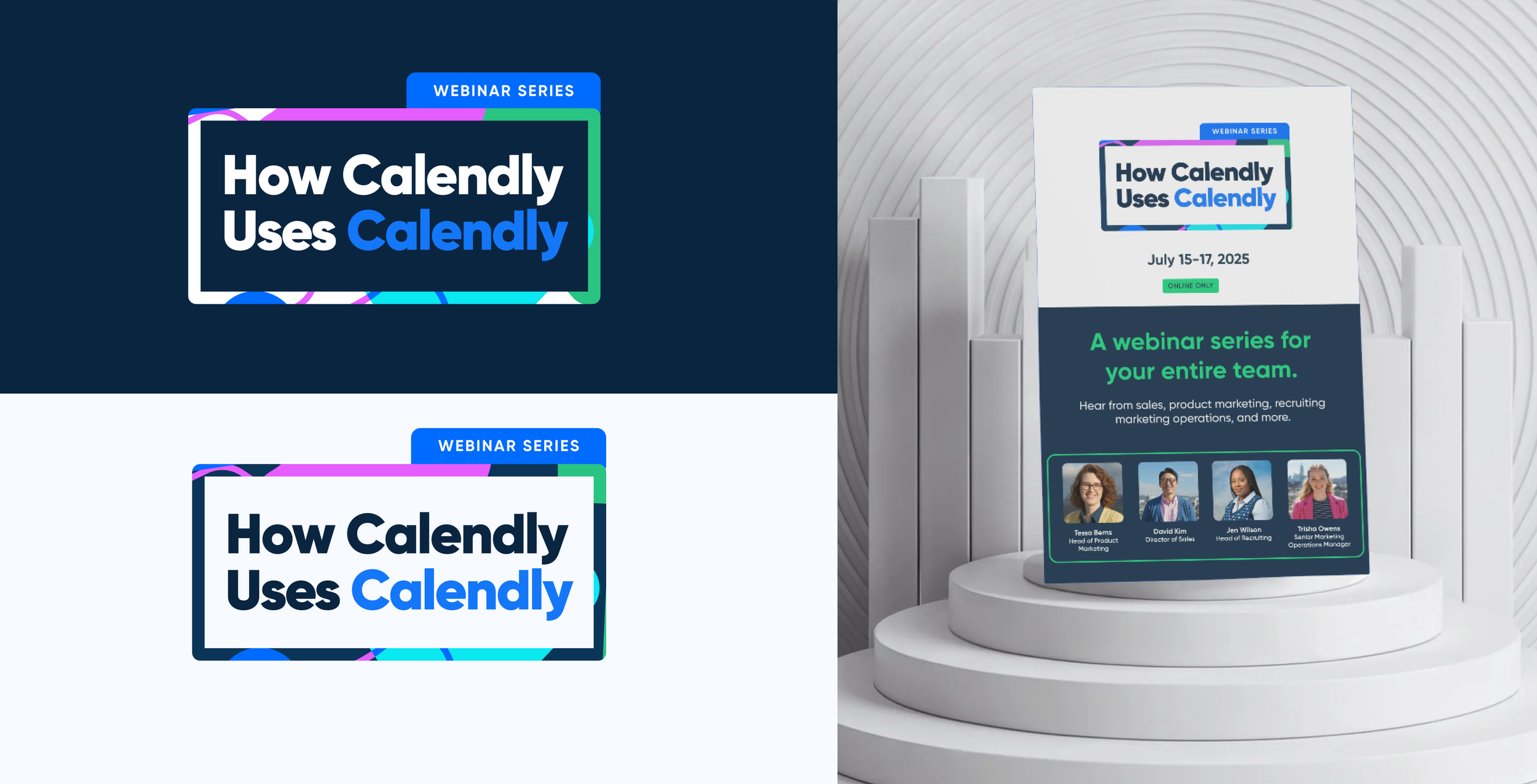 In July of 2023, Calendly hosted the webinar series, How Calendly Uses Calendly. The goal of this three part series was to have leaders at Calendly from the company’s marketing personas speak to how people can best leverage Calendly in their day to day work to add more efficiency to their current processes. The creative team was tasked with coming with art direction for the entire event.