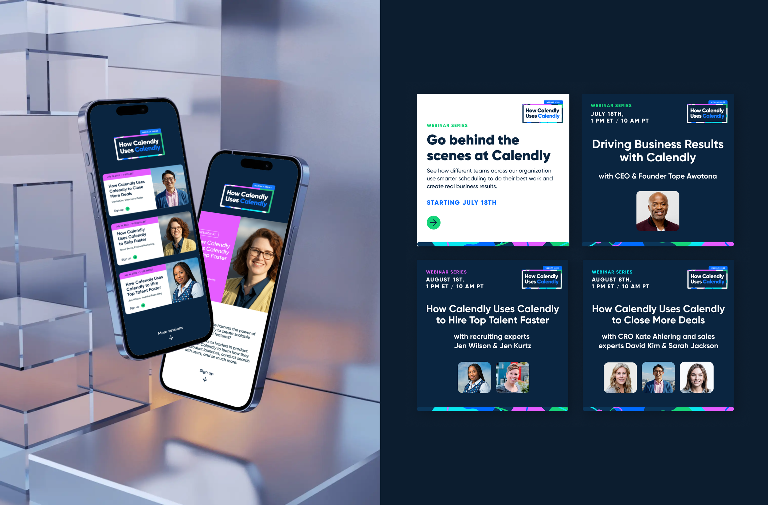 We started by exploring various concepts that kept the integrity of Calendly’s branding while still feeling a bit unique to differentiate this event from many of our other one-off webinars.