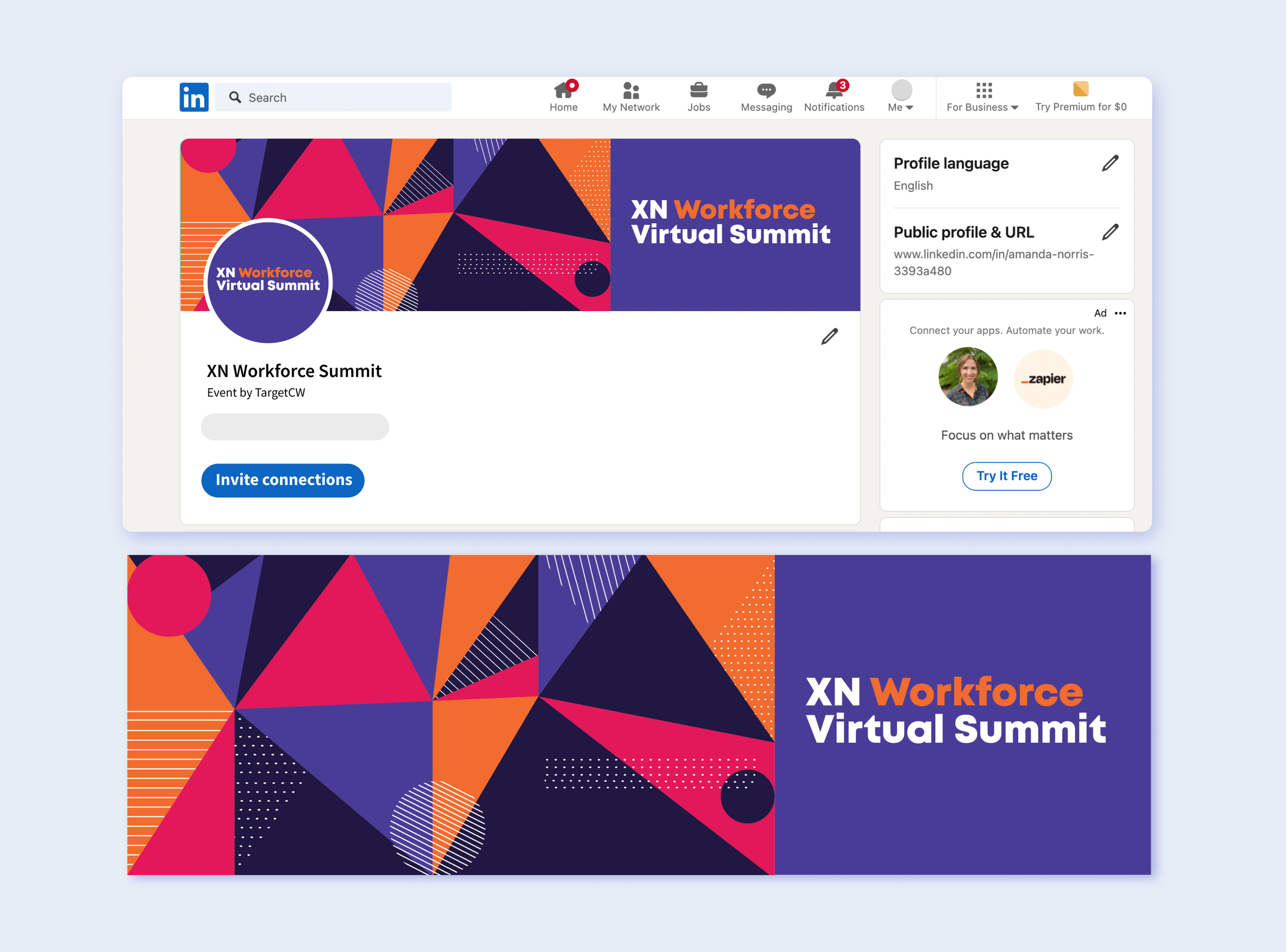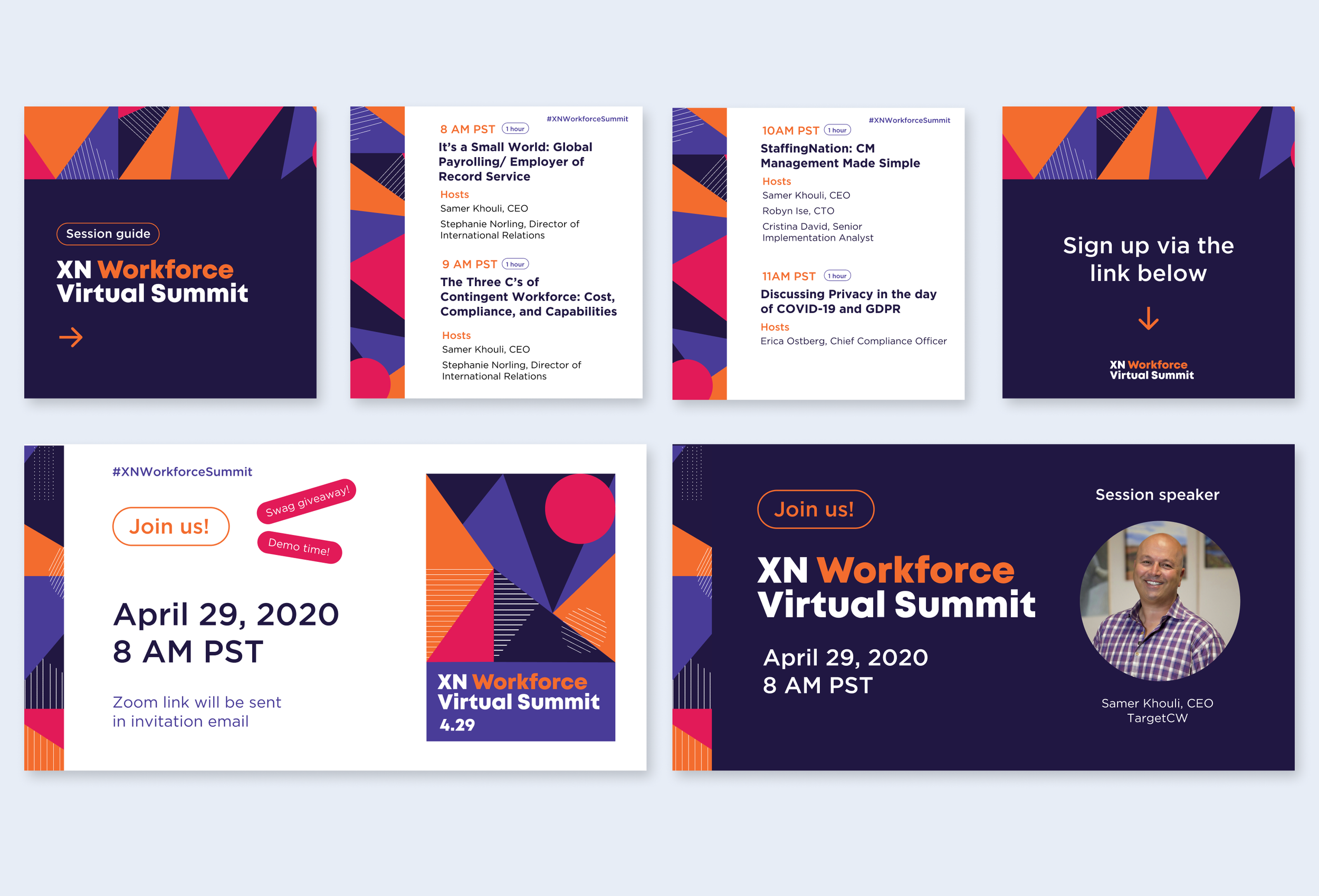 In 2020, TargetCW decided to develop a virtual event for HR professionals focused on the world of contingent workforce management. This was in the middle of COVID and the organization was eager to put on an event to attract potential new clients. I was in charge of developing the branding and all assets for the event.